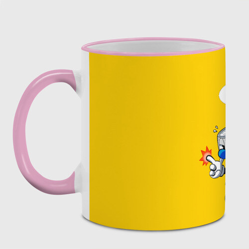 Кружка с принтом, который наносится по всей внешней поверхности, кроме прямоугольника у ручки. У кружки цветной ободок сверху и ручка. Можно заказать со своим дизайном.
