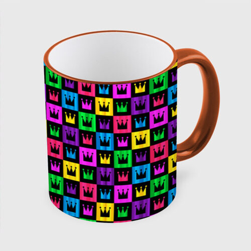 Кружка с принтом, который наносится по всей внешней поверхности, кроме прямоугольника у ручки. У кружки цветной ободок сверху и ручка. Можно заказать со своим дизайном.