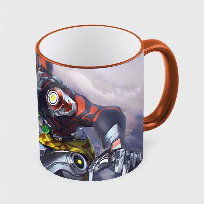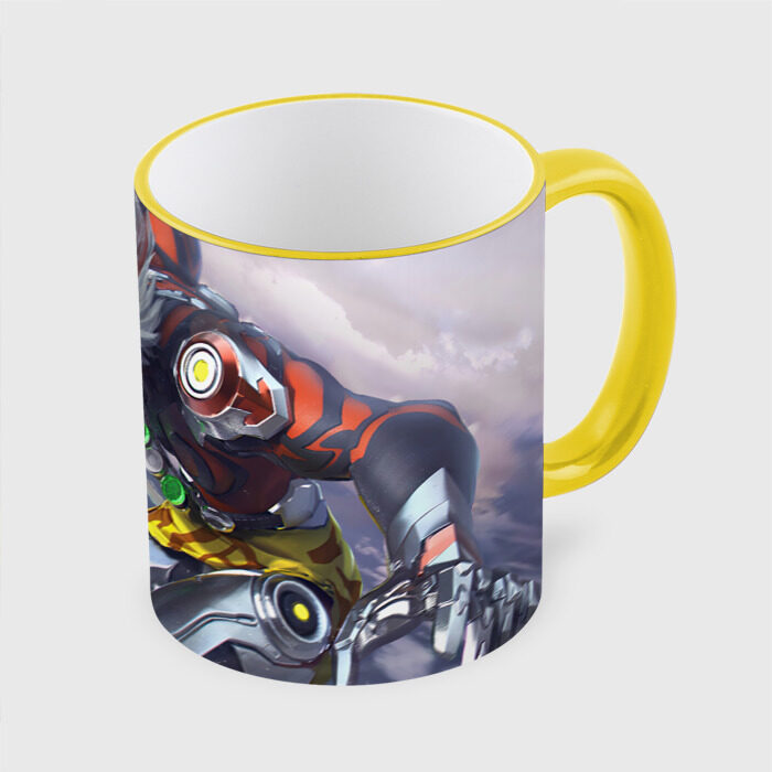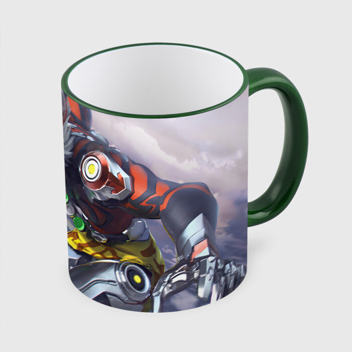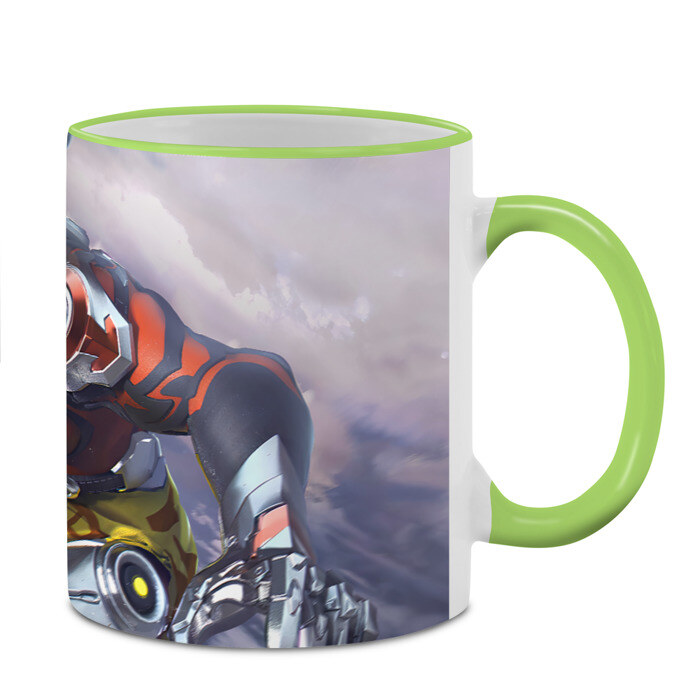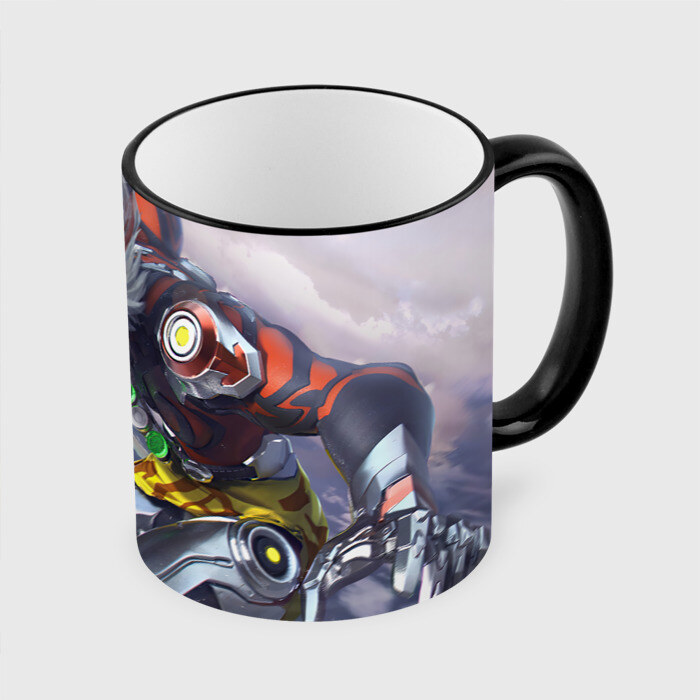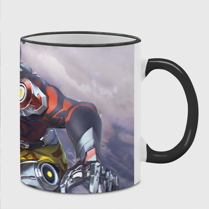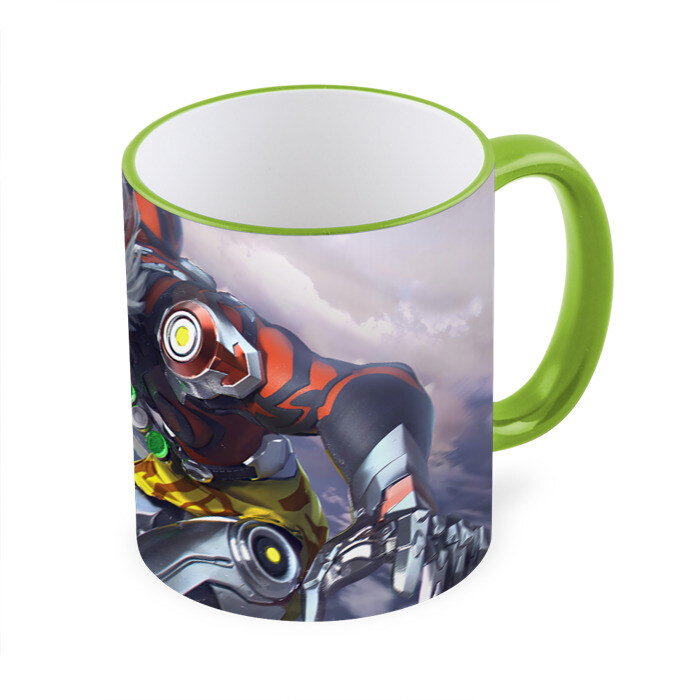 Кружка с принтом, который наносится по всей внешней поверхности, кроме прямоугольника у ручки. У кружки цветной ободок сверху и ручка. Можно заказать со своим дизайном.