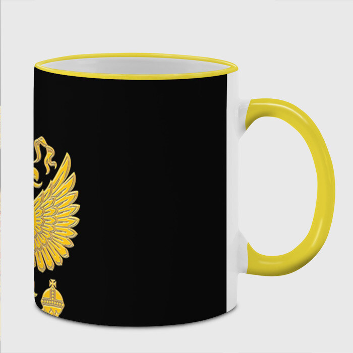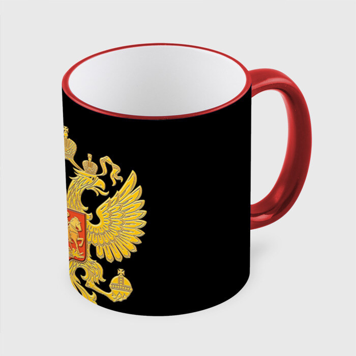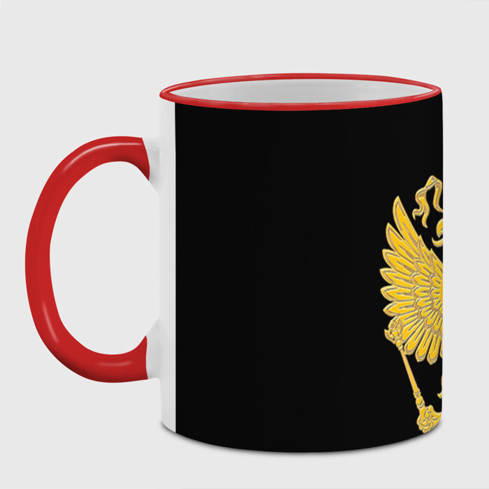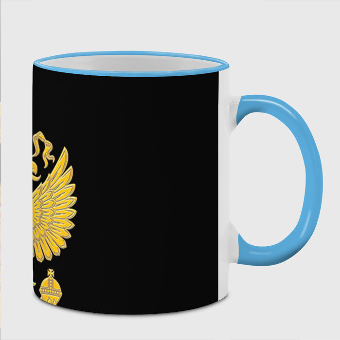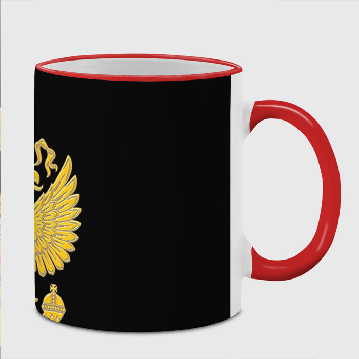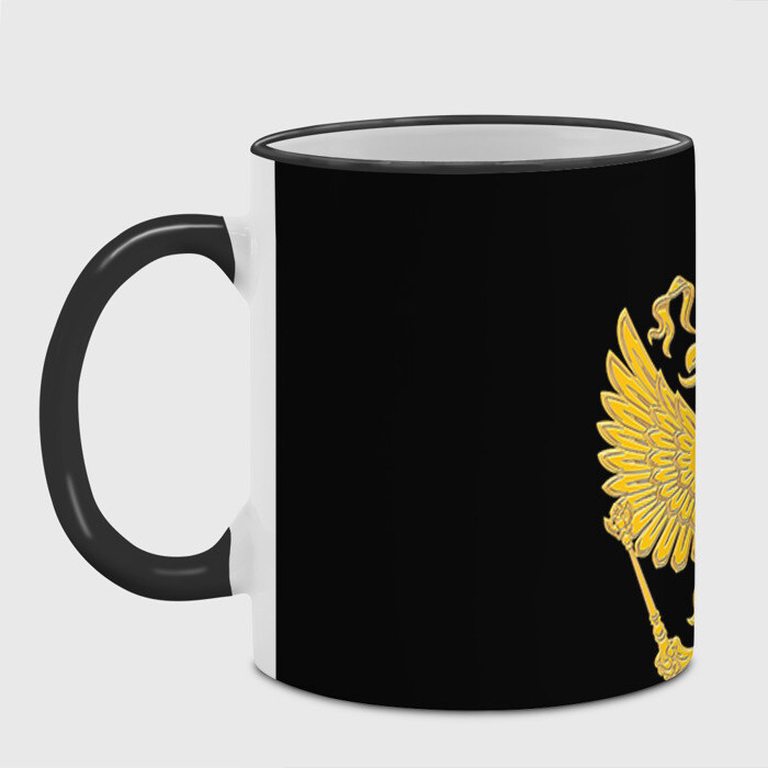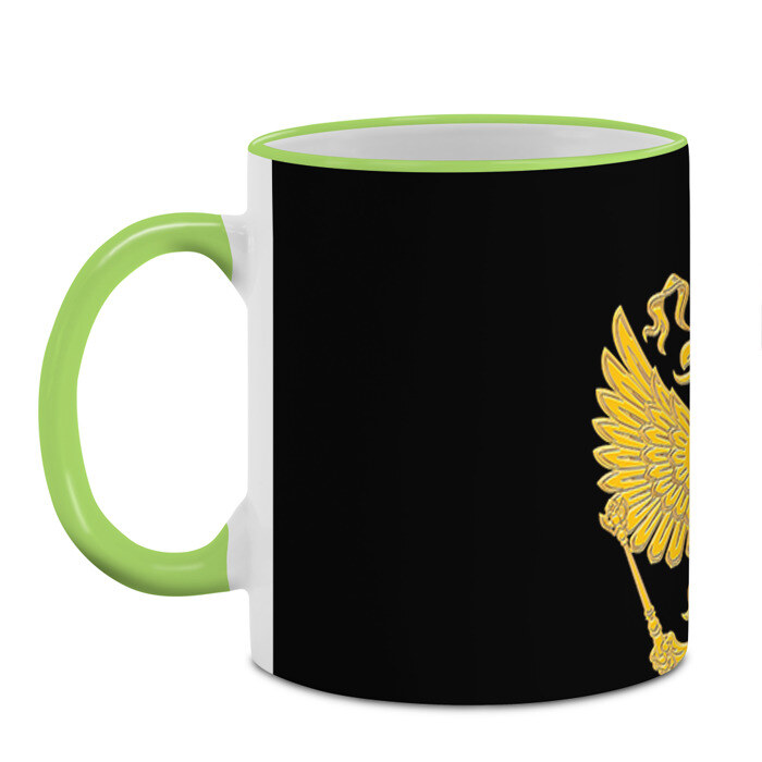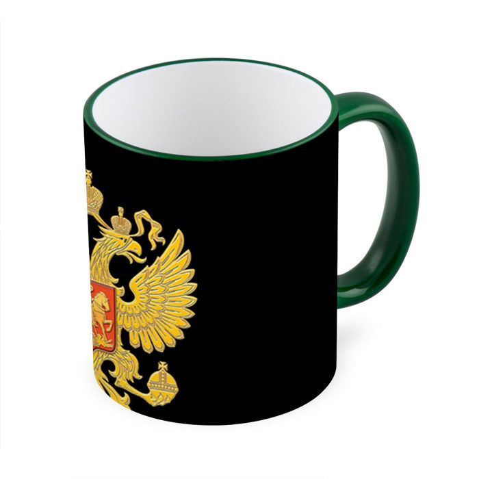 Кружка с принтом, который наносится по всей внешней поверхности, кроме прямоугольника у ручки. У кружки цветной ободок сверху и ручка. Можно заказать со своим дизайном.