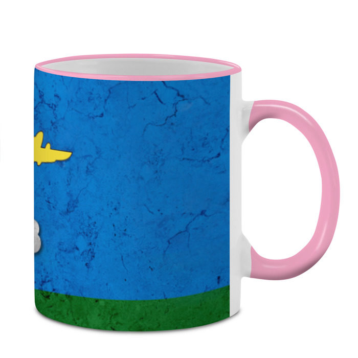 Кружка с принтом, который наносится по всей внешней поверхности, кроме прямоугольника у ручки. У кружки цветной ободок сверху и ручка. Можно заказать со своим дизайном.