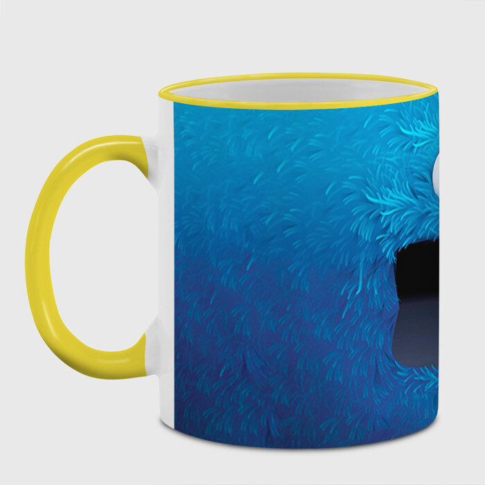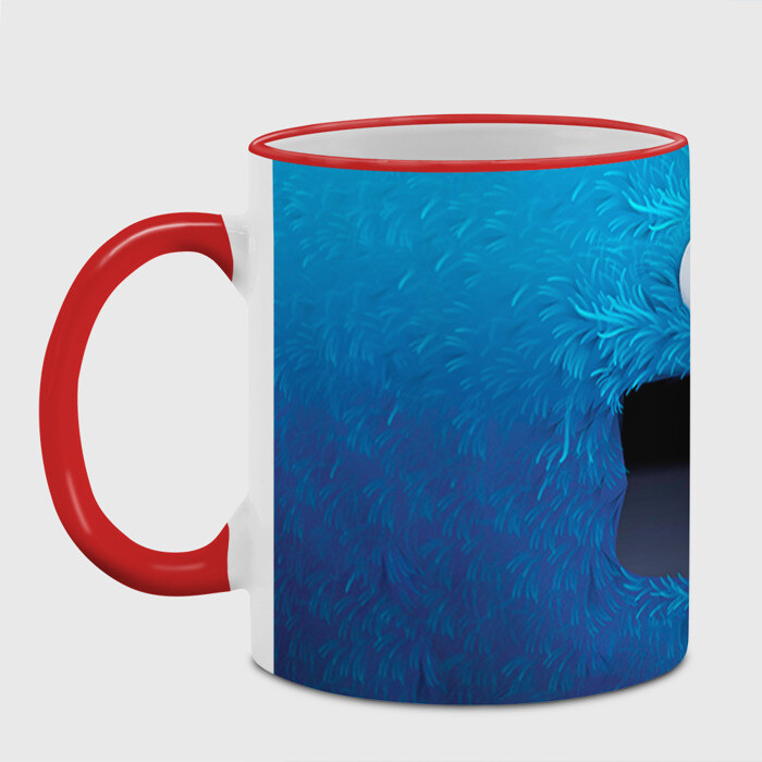 Кружка с принтом, который наносится по всей внешней поверхности, кроме прямоугольника у ручки. У кружки цветной ободок сверху и ручка. Можно заказать со своим дизайном.