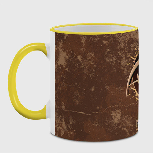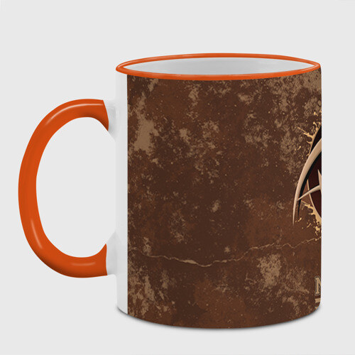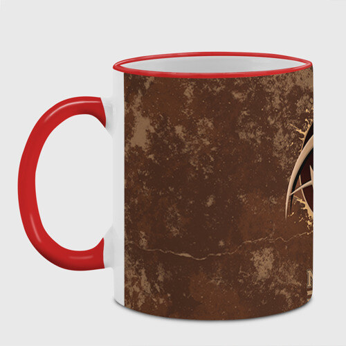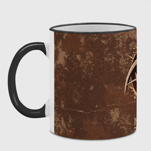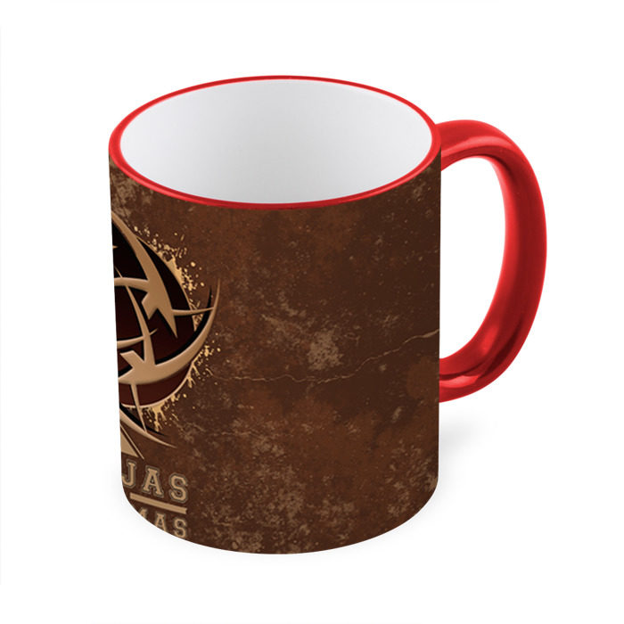 Кружка с принтом, который наносится по всей внешней поверхности, кроме прямоугольника у ручки. У кружки цветной ободок сверху и ручка. Можно заказать со своим дизайном.