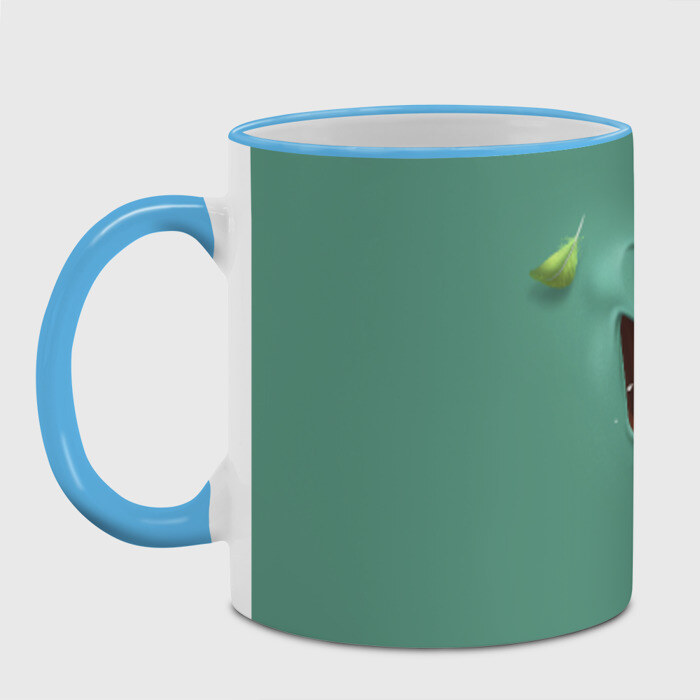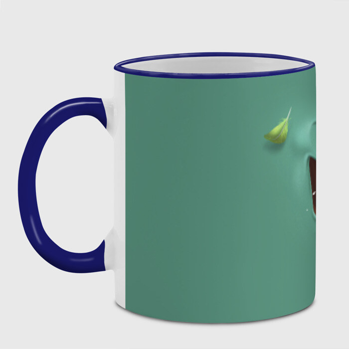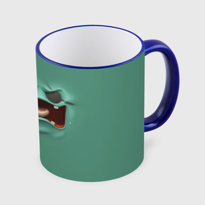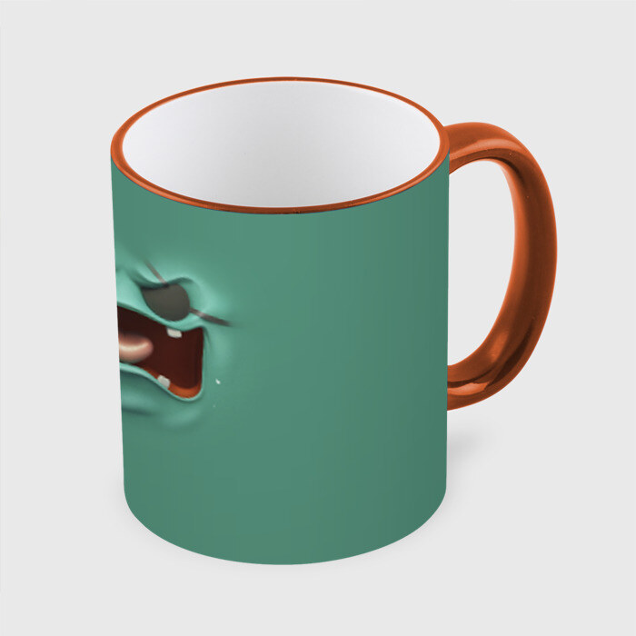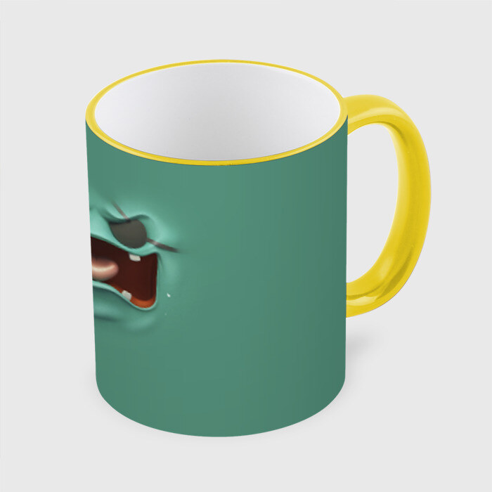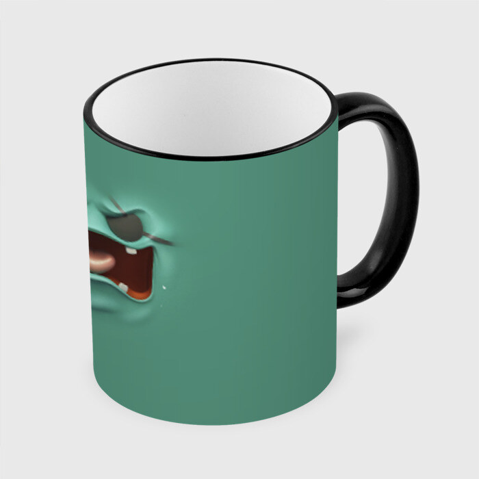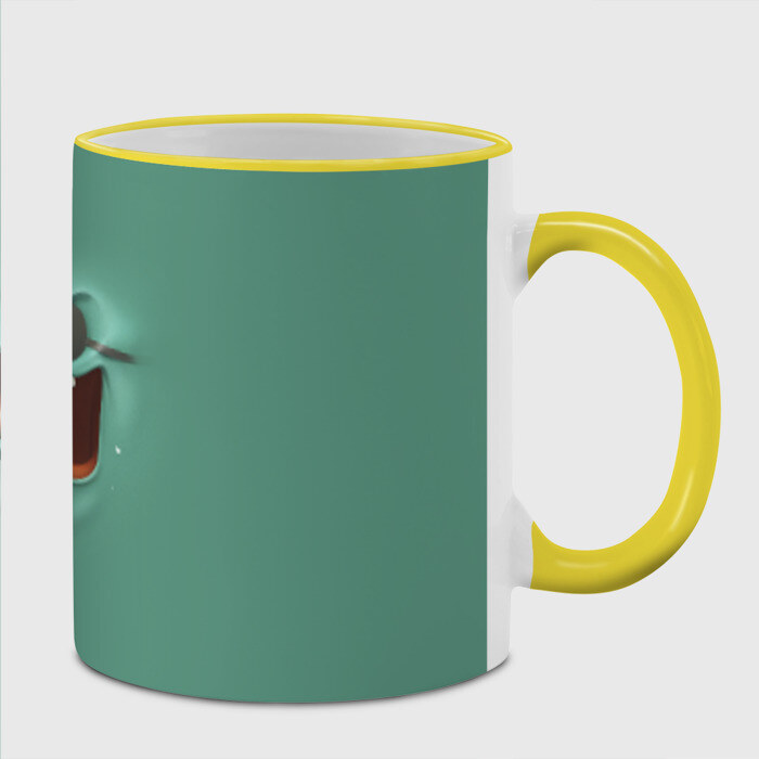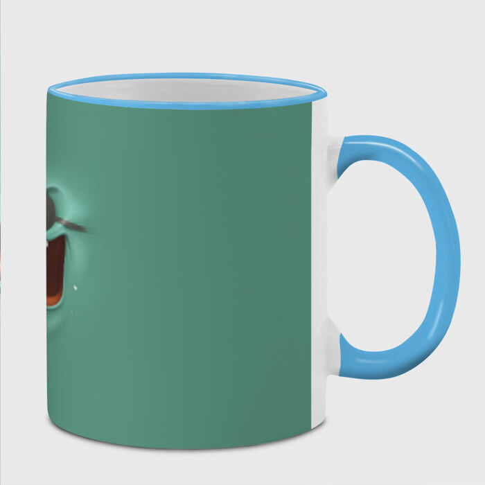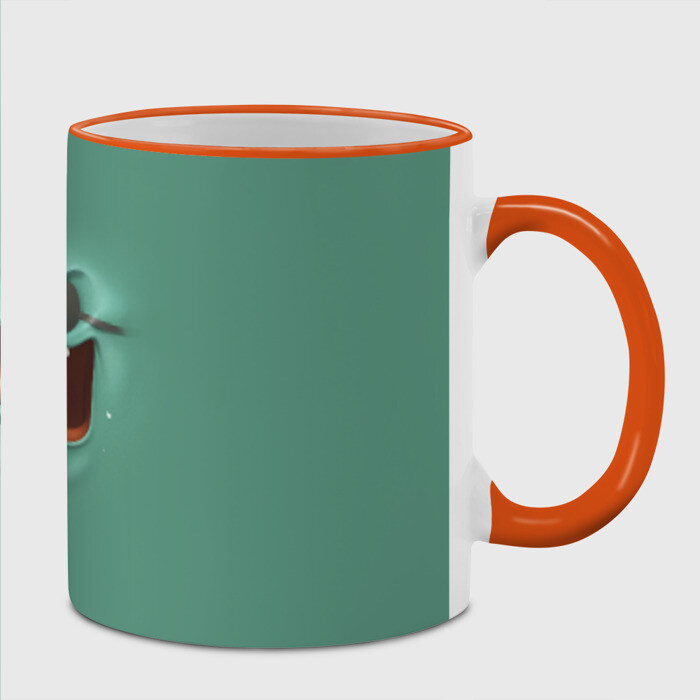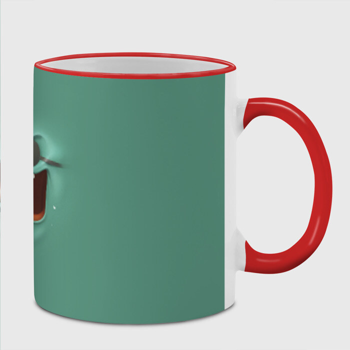 Кружка с принтом, который наносится по всей внешней поверхности, кроме прямоугольника у ручки. У кружки цветной ободок сверху и ручка. Можно заказать со своим дизайном.