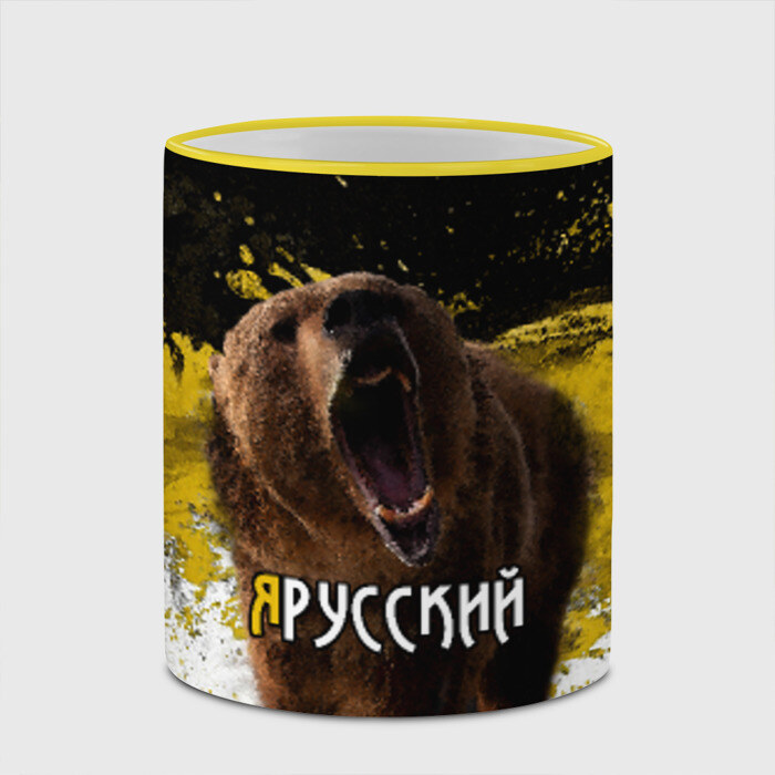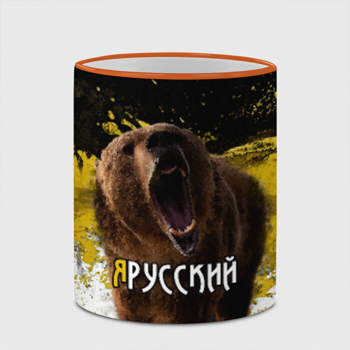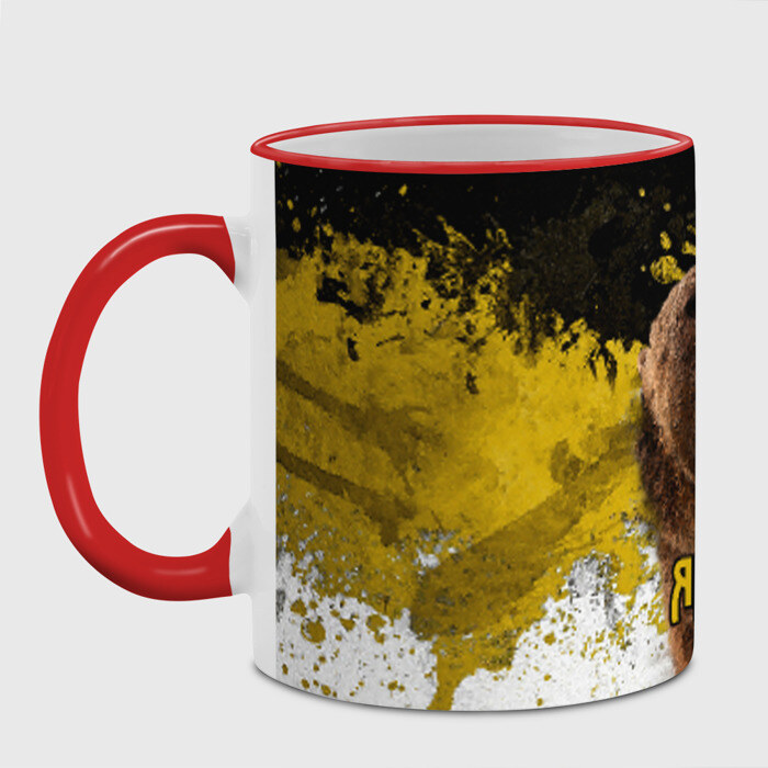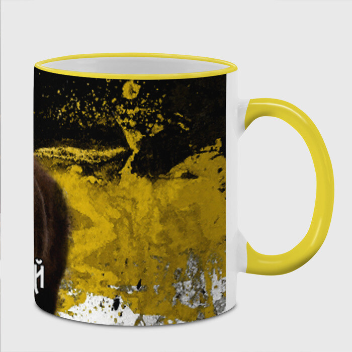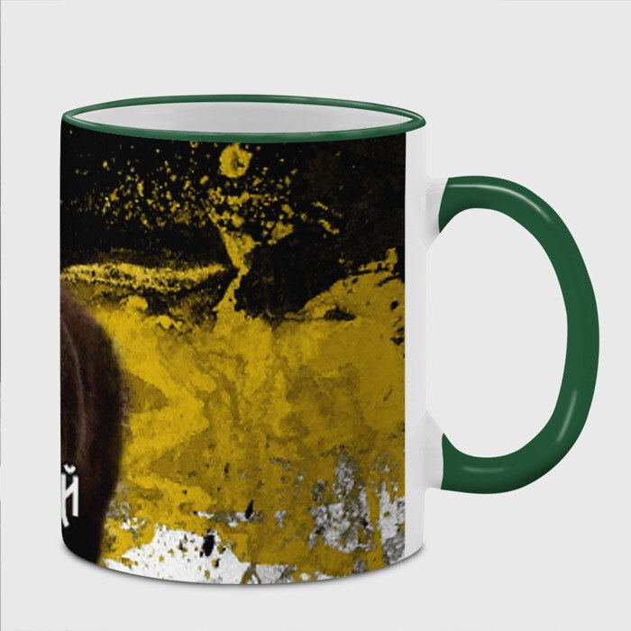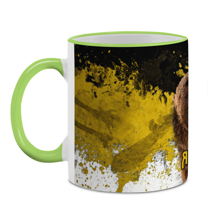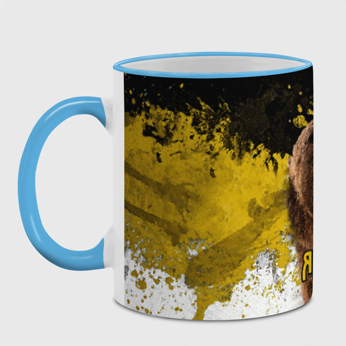 Кружка с принтом, который наносится по всей внешней поверхности, кроме прямоугольника у ручки. У кружки цветной ободок сверху и ручка. Можно заказать со своим дизайном.