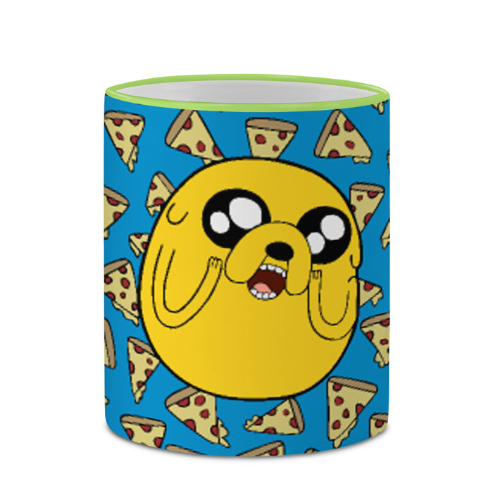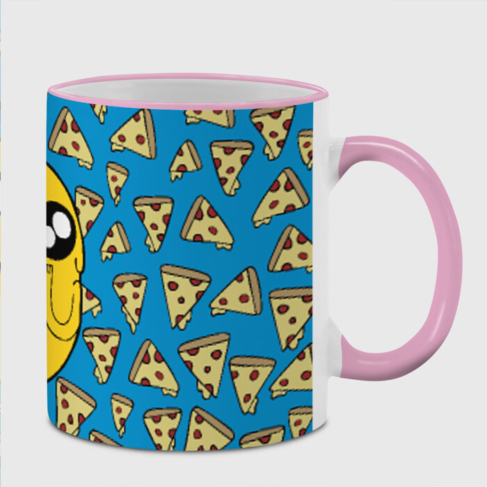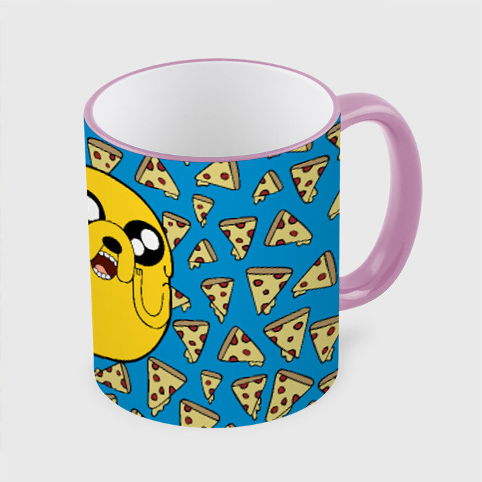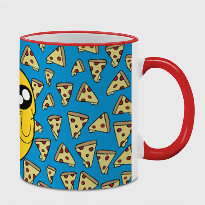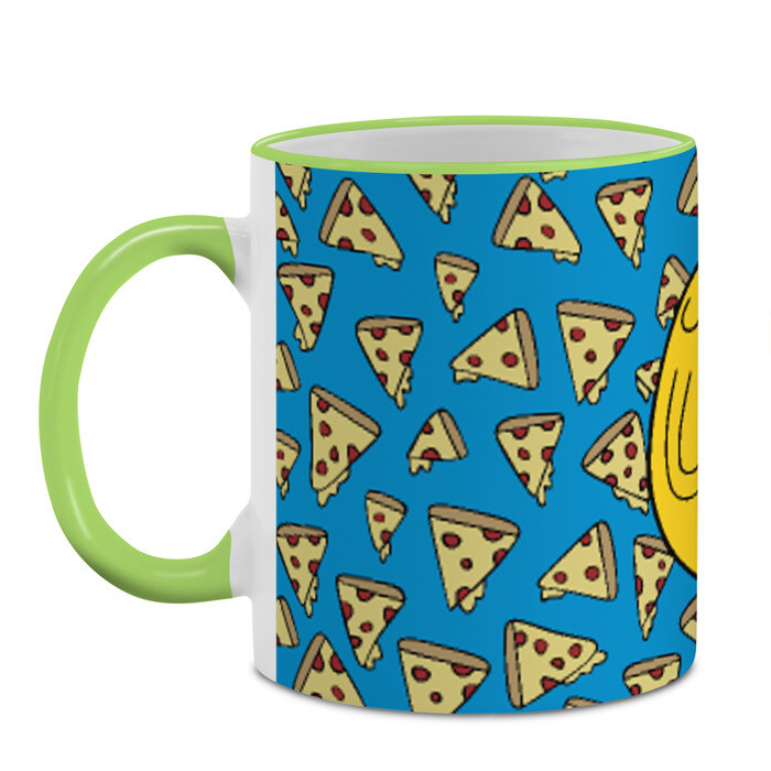 Кружка с принтом, который наносится по всей внешней поверхности, кроме прямоугольника у ручки. У кружки цветной ободок сверху и ручка. Можно заказать со своим дизайном.
