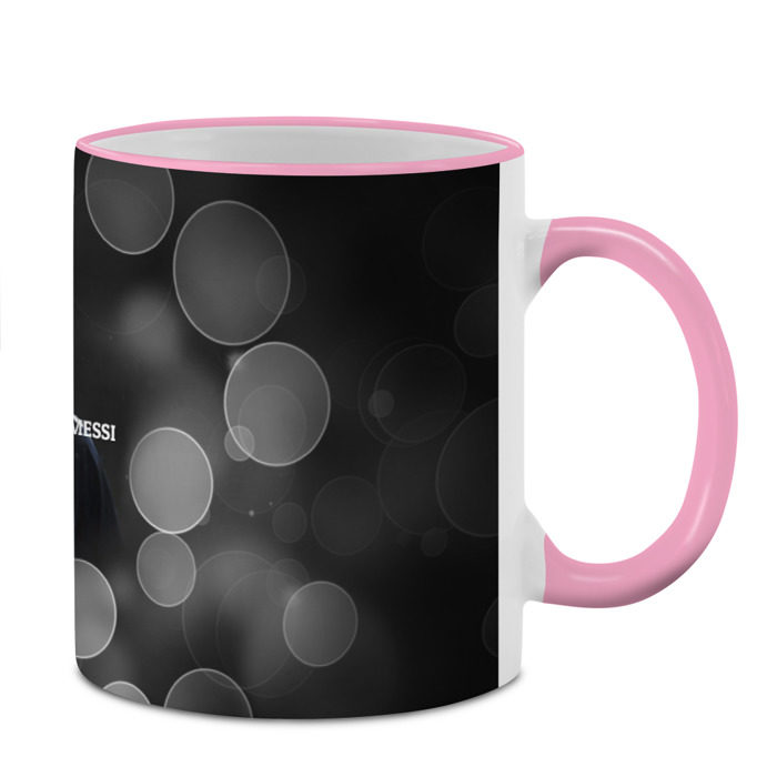 Кружка с принтом, который наносится по всей внешней поверхности, кроме прямоугольника у ручки. У кружки цветной ободок сверху и ручка. Можно заказать со своим дизайном.