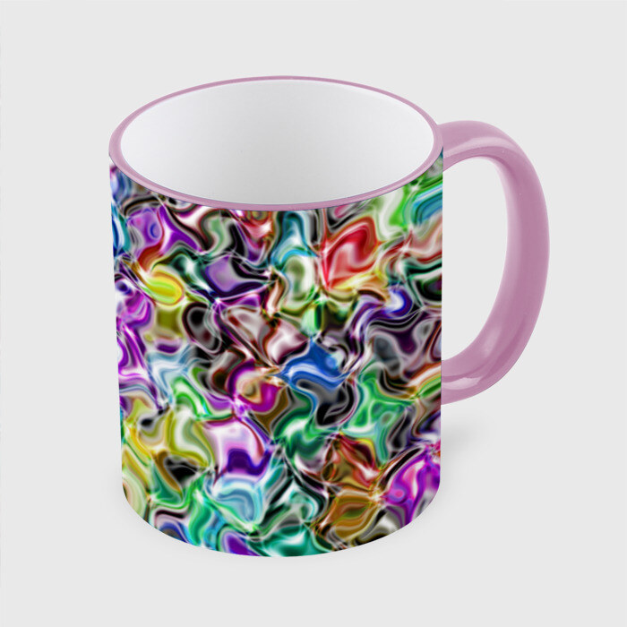 Кружка с принтом, который наносится по всей внешней поверхности, кроме прямоугольника у ручки. У кружки цветной ободок сверху и ручка. Можно заказать со своим дизайном.