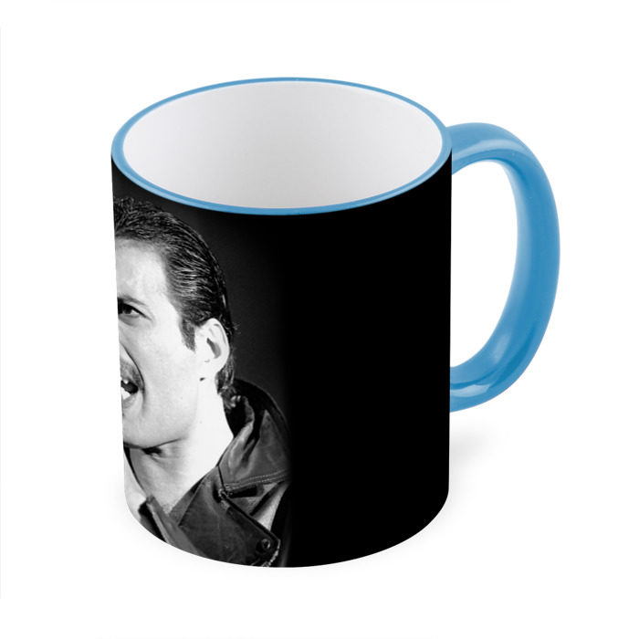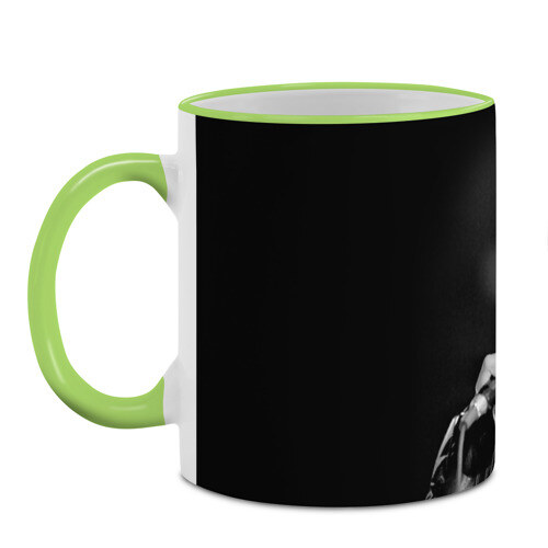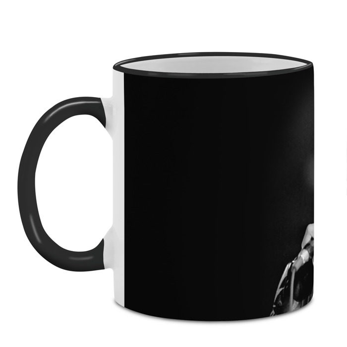 Кружка с принтом, который наносится по всей внешней поверхности, кроме прямоугольника у ручки. У кружки цветной ободок сверху и ручка. Можно заказать со своим дизайном.
