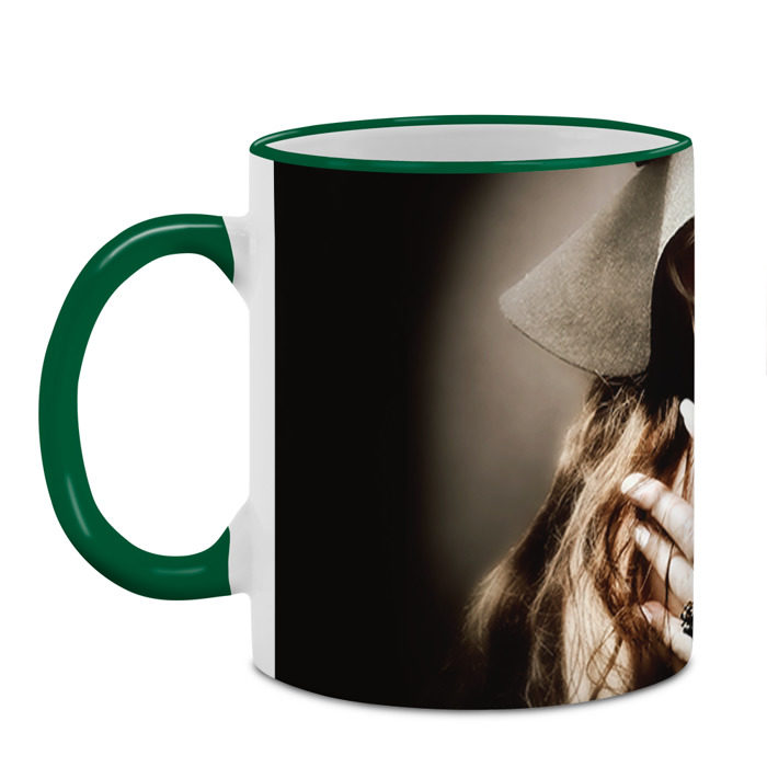 Кружка с принтом, который наносится по всей внешней поверхности, кроме прямоугольника у ручки. У кружки цветной ободок сверху и ручка. Можно заказать со своим дизайном.