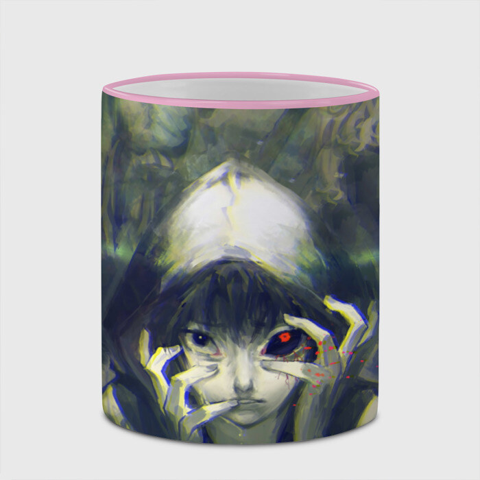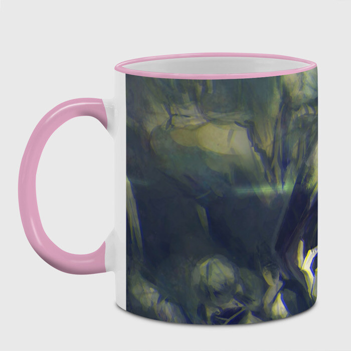 Кружка с принтом, который наносится по всей внешней поверхности, кроме прямоугольника у ручки. У кружки цветной ободок сверху и ручка. Можно заказать со своим дизайном.