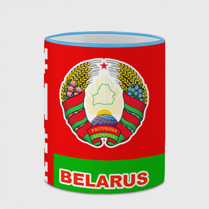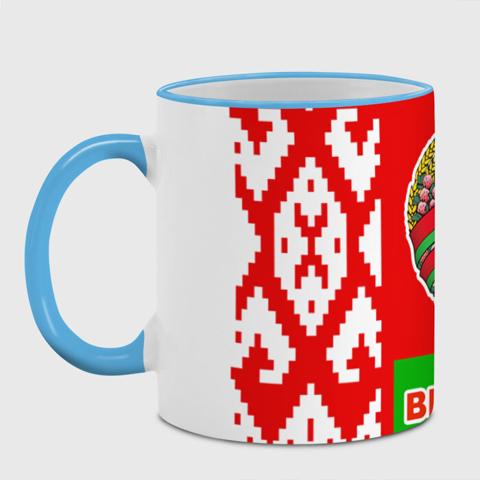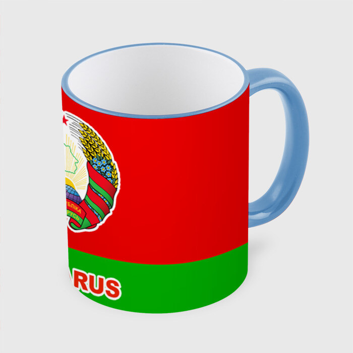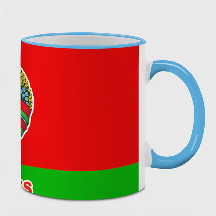 Кружка с принтом, который наносится по всей внешней поверхности, кроме прямоугольника у ручки. У кружки цветной ободок сверху и ручка. Можно заказать со своим дизайном.