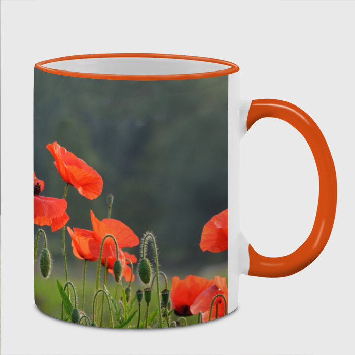 Кружка с принтом, который наносится по всей внешней поверхности, кроме прямоугольника у ручки. У кружки цветной ободок сверху и ручка. Можно заказать со своим дизайном.