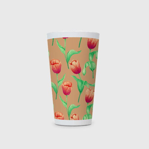 Кружка Латте с принтом Тюльпаны на бежевом фоне
