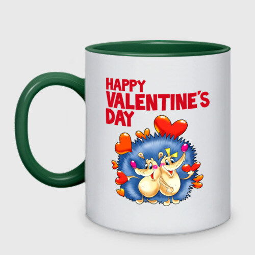 Кружка двухцветная с принтом Ёжики с сердечками