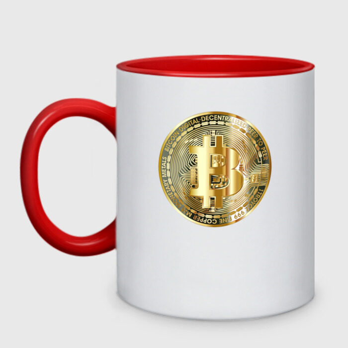 Кружка двухцветная с принтом Биткоин (bitcoin)