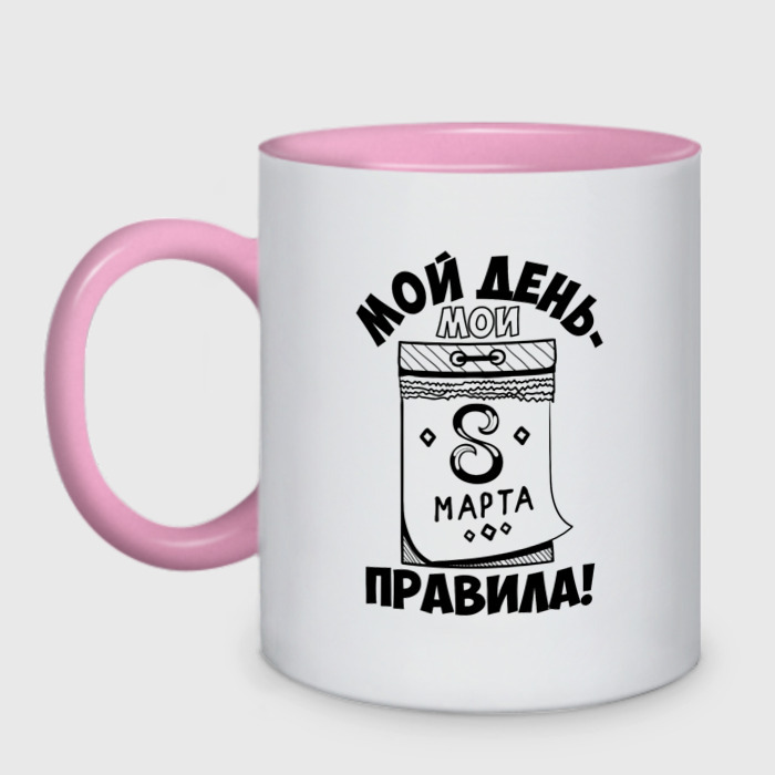 Кружка двухцветная с принтом Женский праздник на календаре