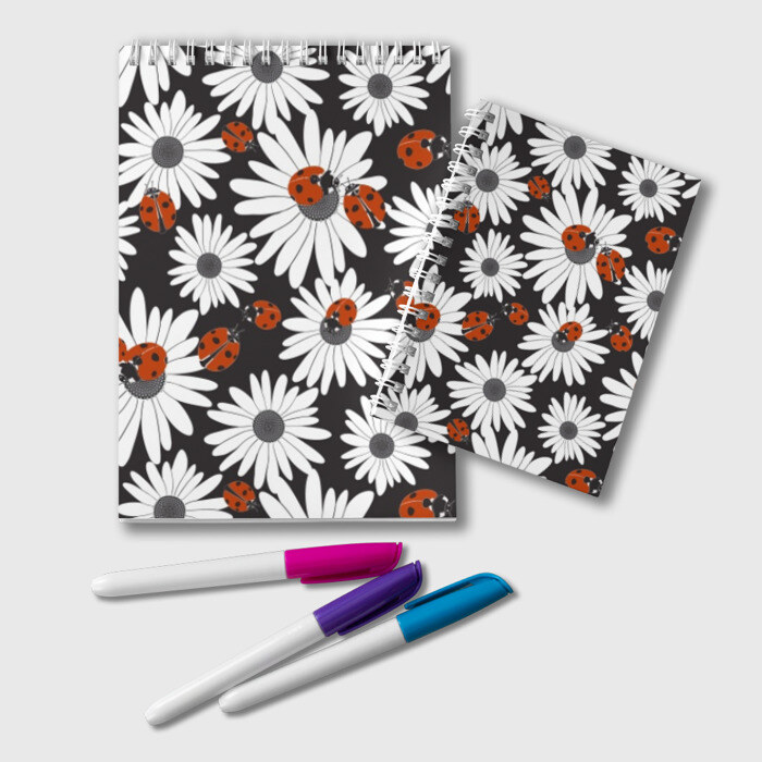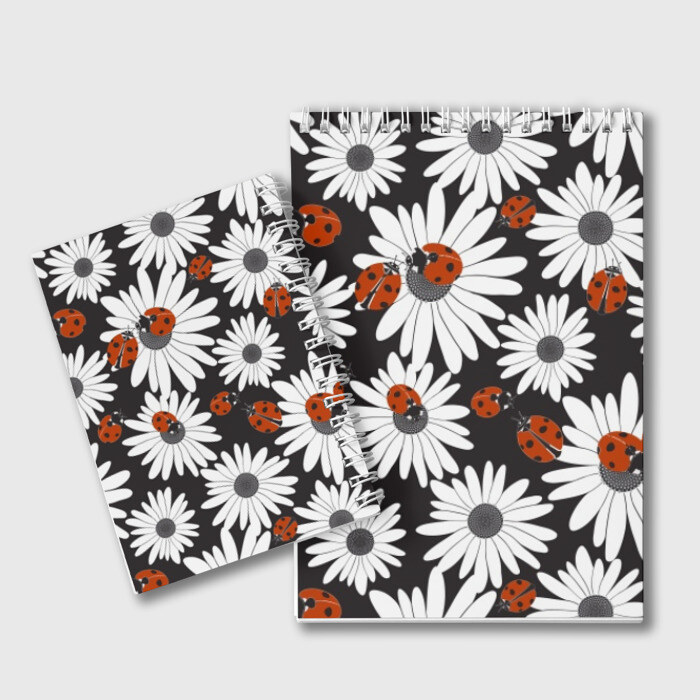 Блокнот на спирали в двух размерах: А5 с пружинкой сверху или А6 с пружинкой сбоку. Есть блокноты в клетку, просто с белыми страницами, с точками и в крупную клетку. Такие блокноты сделают жизнь веселее, потому что теперь их можно купить с самыми разными принтами и даже со своим дизайном.