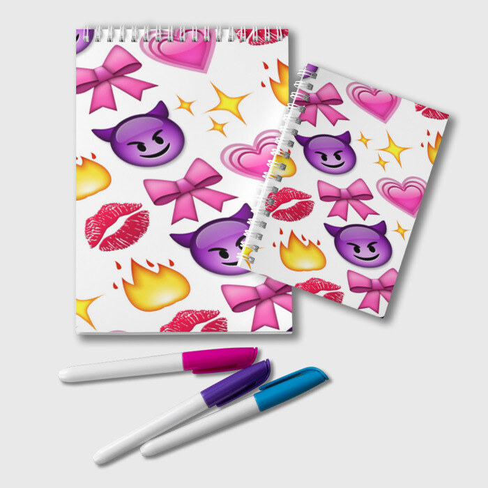 Блокнот на спирали в двух размерах: А5 с пружинкой сверху или А6 с пружинкой сбоку. Есть блокноты в клетку, просто с белыми страницами, с точками и в крупную клетку. Такие блокноты сделают жизнь веселее, потому что теперь их можно купить с самыми разными принтами и даже со своим дизайном.