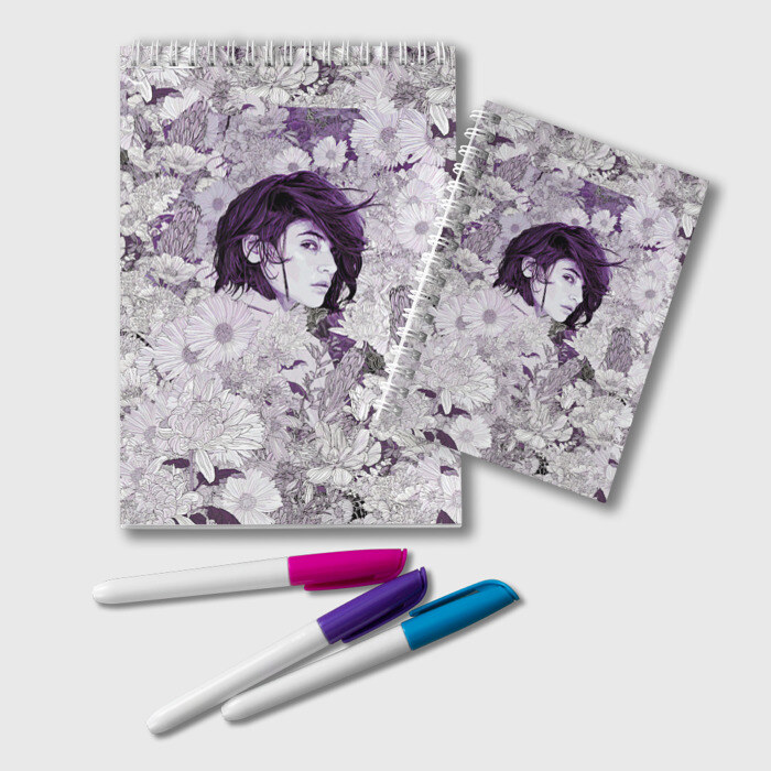 Блокнот с принтом Девушка среди цветов