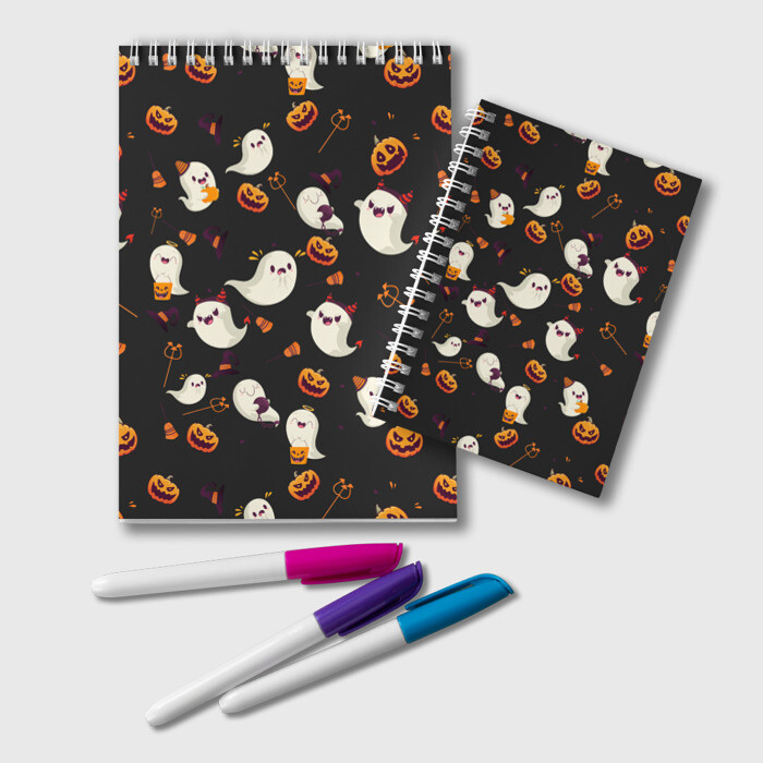 Блокнот на спирали в двух размерах: А5 с пружинкой сверху или А6 с пружинкой сбоку. Есть блокноты в клетку, просто с белыми страницами, с точками и в крупную клетку. Такие блокноты сделают жизнь веселее, потому что теперь их можно купить с самыми разными принтами и даже со своим дизайном.
