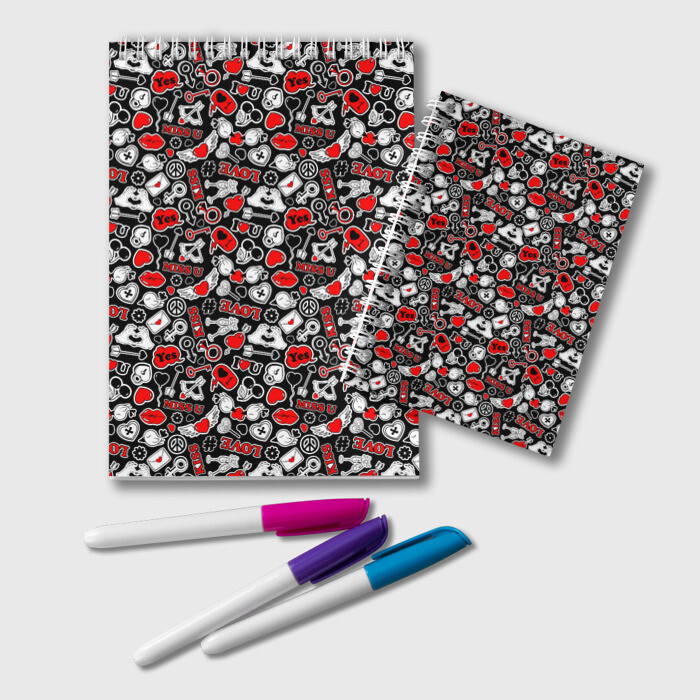 Блокнот на спирали в двух размерах: А5 с пружинкой сверху или А6 с пружинкой сбоку. Есть блокноты в клетку, просто с белыми страницами, с точками и в крупную клетку. Такие блокноты сделают жизнь веселее, потому что теперь их можно купить с самыми разными принтами и даже со своим дизайном.