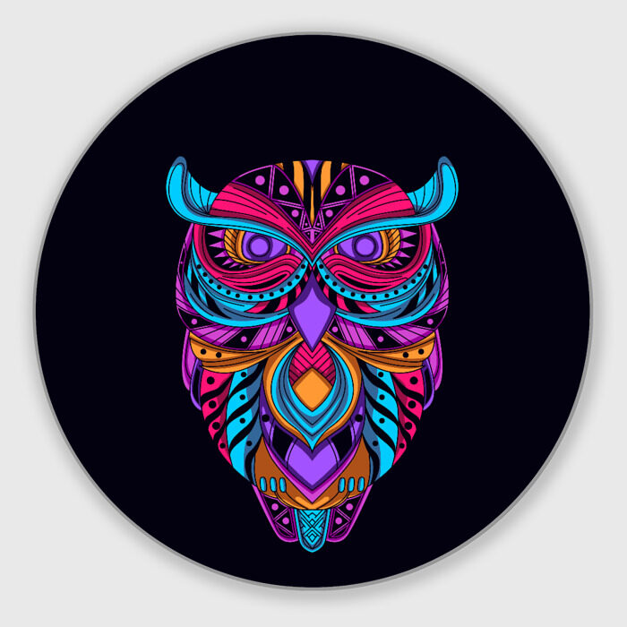 Коврик для мышки круглый с принтом Неоновая сова