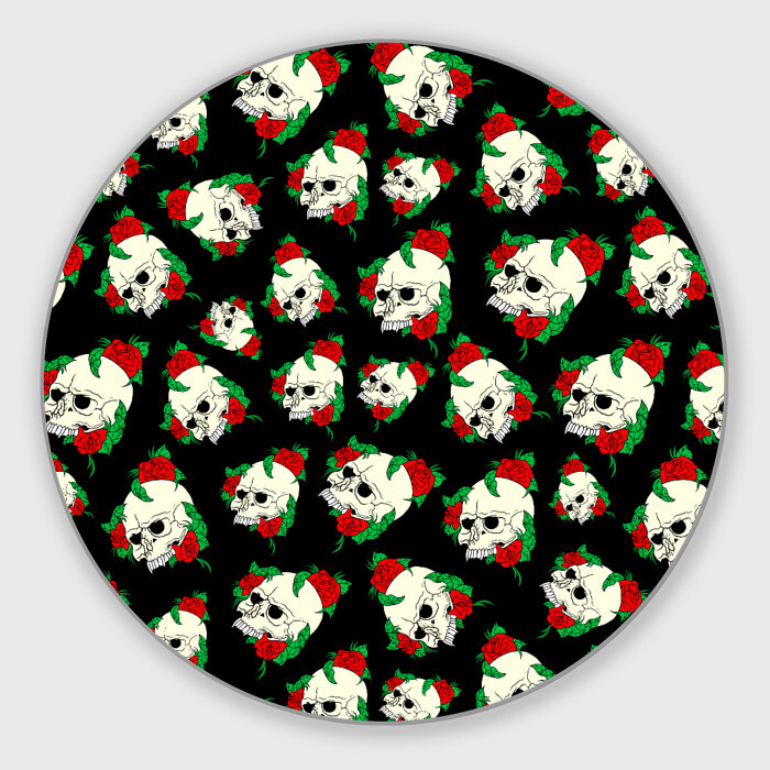 Коврик для мышки круглый с принтом Черепа и розы / Skull and Roses