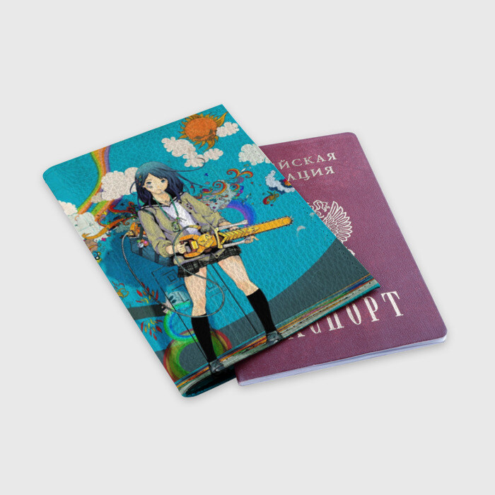 Обложка для паспорта матовая кожа с принтом Тян с пилой
