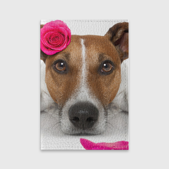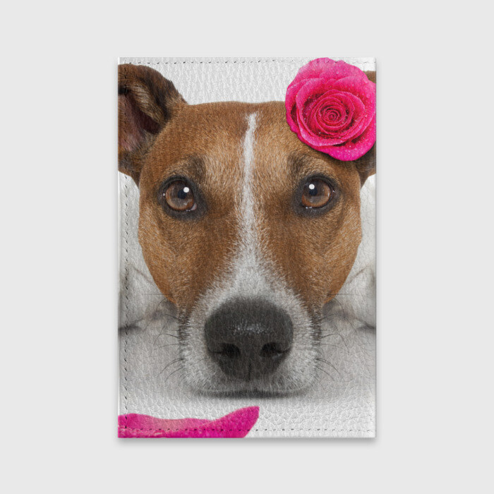 Обложка для паспорта матовая кожа с принтом Джек рассел с розой