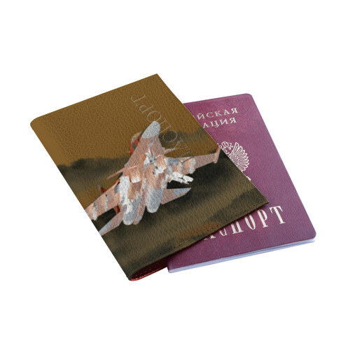 Обложка для паспорта матовая кожа с принтом Ночной полет Сухого