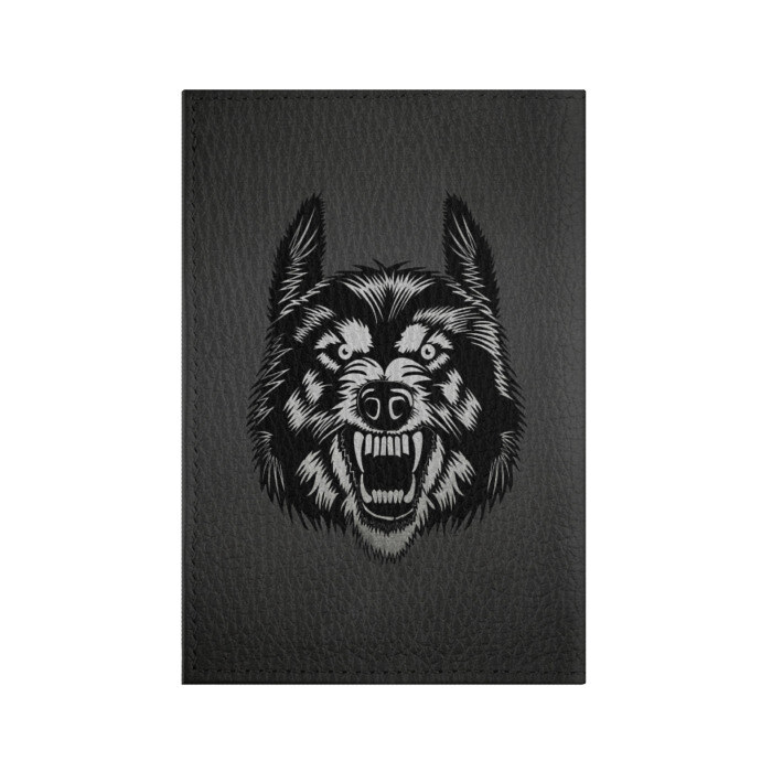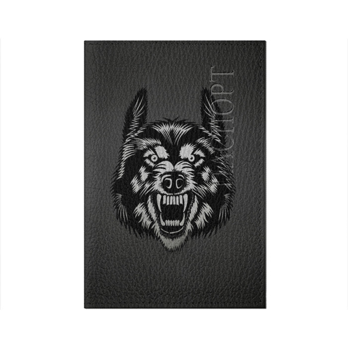 Обложка для паспорта матовая кожа с принтом Злой оскал волка