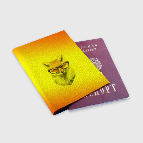 Обложка для паспорта матовая кожа с принтом Лис ученый