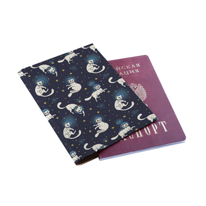 Обложка для паспорта матовая кожа с принтом Космокотики