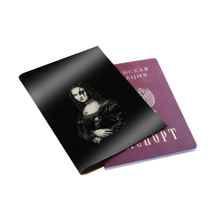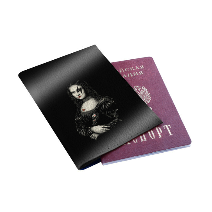 Обложка для паспорта матовая кожа с принтом Мона Лиза Kiss
