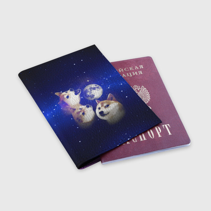 Обложка для паспорта матовая кожа с принтом Космопес Хатико