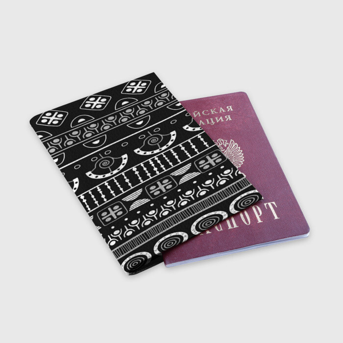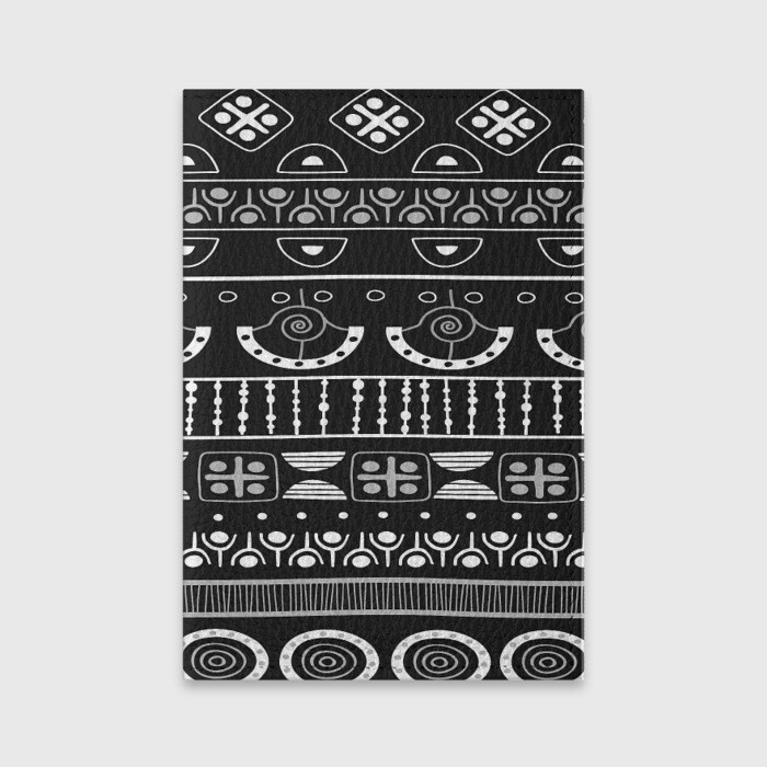 Обложка для паспорта матовая кожа с принтом Black and White ethnic