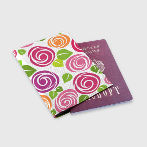 Обложка для паспорта матовая кожа с принтом Розы Минимализм