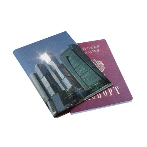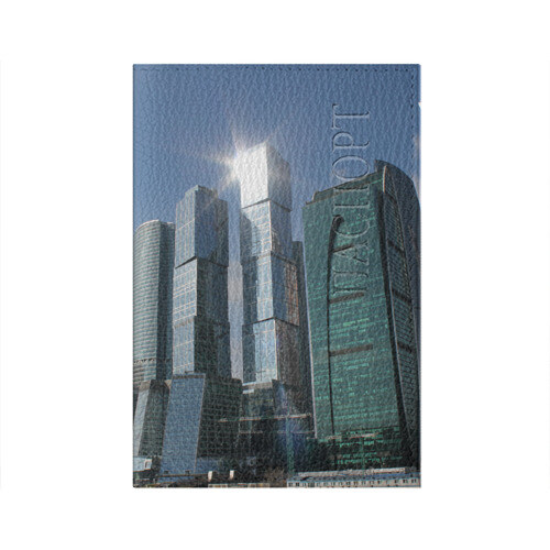 Обложка для паспорта матовая кожа с принтом Москва-сити