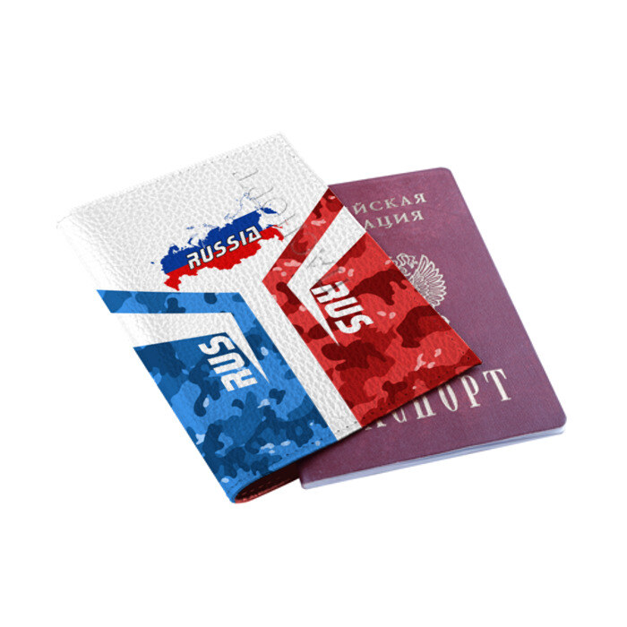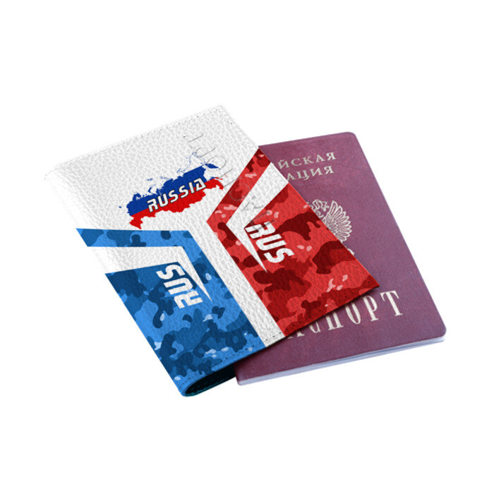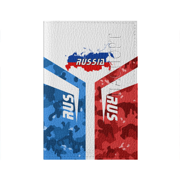 Обложка для паспорта матовая кожа с принтом Страна Russia с камуфляжем