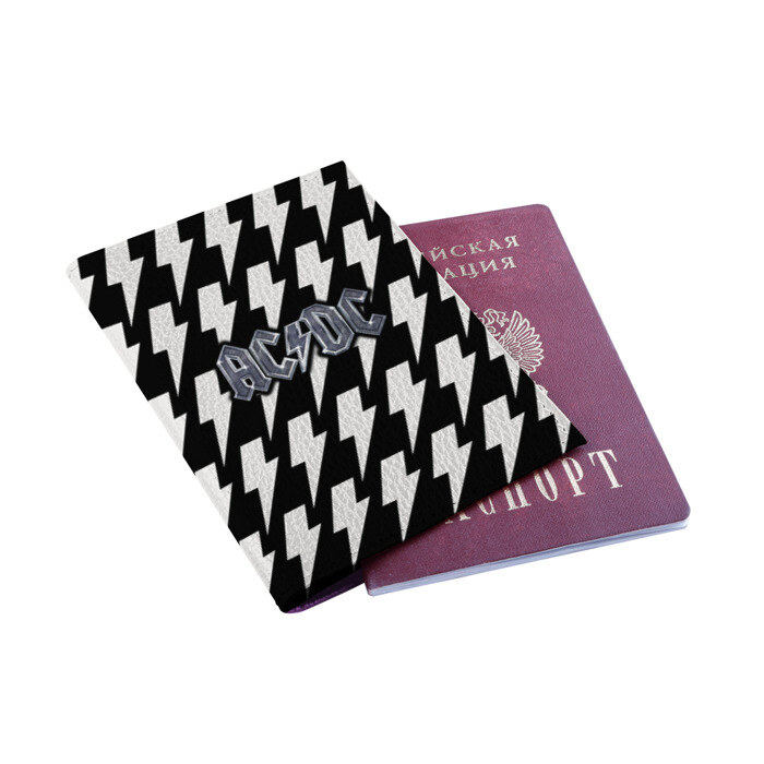Обложка для паспорта матовая кожа с принтом AC/DC