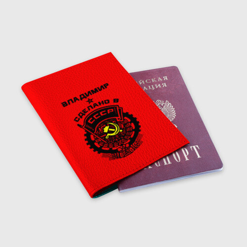 Обложка для паспорта матовая кожа с принтом Владимир - сделано в СССР