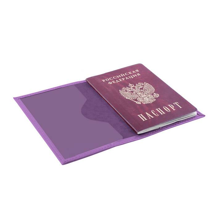 Обложка для паспорта сделана из натуральной матовой кожи с бархатистой внутренней поверхностью. Листы фиксируются прозрачными пластиковыми креплениями.