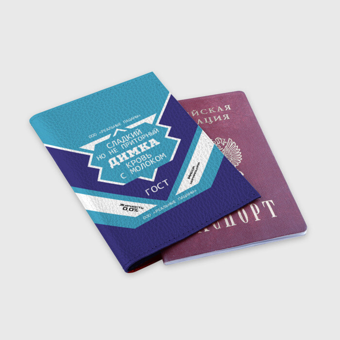Обложка для паспорта матовая кожа с принтом Димка - банка сгущенки