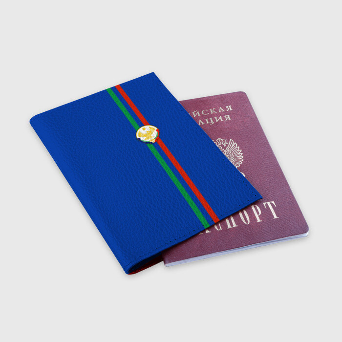 Обложка для паспорта матовая кожа с принтом Дагестан, лента с гербом