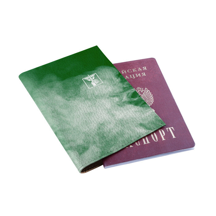Обложка для паспорта сделана из натуральной матовой кожи с бархатистой внутренней поверхностью. Листы фиксируются прозрачными пластиковыми креплениями.