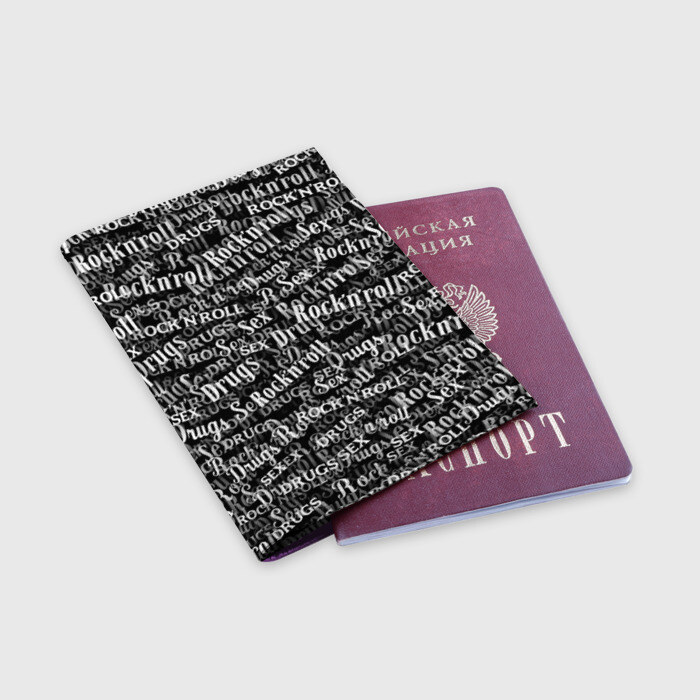 Обложка для паспорта матовая кожа с принтом Sex, Drugs & Rock`n`Roll