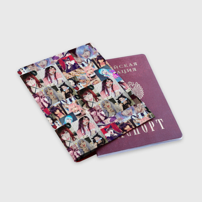 Обложка для паспорта матовая кожа с принтом REAL AHEGAO (В ЦВЕТЕ)