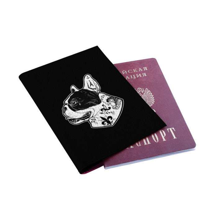 Обложка для паспорта матовая кожа с принтом Французский Бульдог