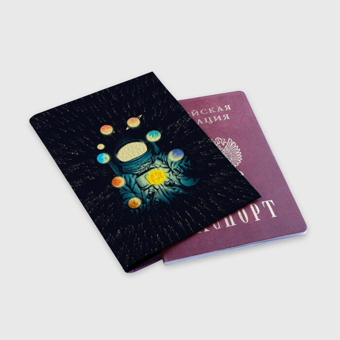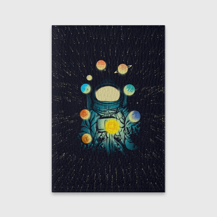 Обложка для паспорта матовая кожа с принтом Космический жонглер
